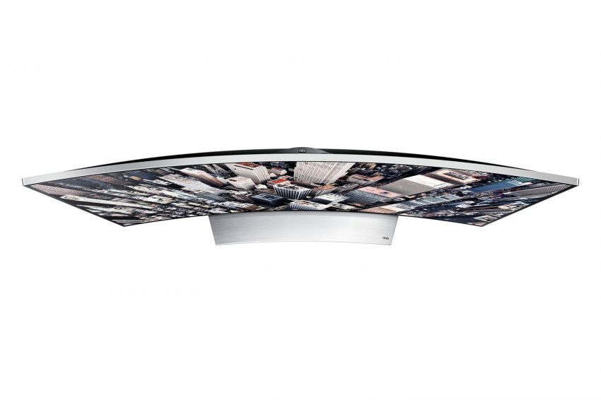 Sobre a tela curvada, ela ainda é bastante eficiente em reduzir o cansaço visual após longos períodos de exposição. Já os alto falantes ficam espalhados por toda a extensão da televisão, ampliando a qualidade do som e quando associada a qualidade Ultra HD da imagem oferece uma experiência pra lá de dinâmica e surpreendente para o consumidor.