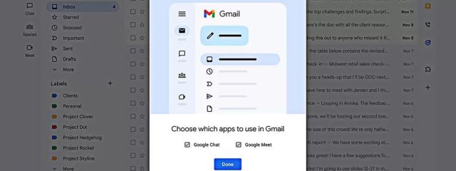 Além disso, os usuários do Gmail, Chat e Meet poderão selecionar quais aplicativos desejam incluir na sua nova experiência, podendo assim configurar uma visualização personalizada de suas opções preferidas nas configurações rápidas. Mas, se preferirem, poderão usar apenas a configuração do Gmail.