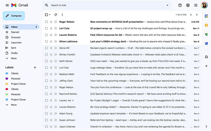 O Google anunciou novas mudanças no design do Gmail. Uma série de alterações já tinham sido feitas no começo deste ano, quando a empresa lançou uma visualização integrada do Gmail na web, com a possibilidade de alternância entre o Chat, o Meet e o Spaces. Agora, a empresa anuncia um redesign do Material You.