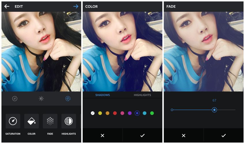 Sempre inovando, a surpresa da vez é o lançamento de duas novas funções para edição, disponível para todos os usuários na nova atualização do programa. As funções Cor e Fade poderão ser agregados como recursos uteis aos filtros do app, integrando mais possibilidades no uso do programa.