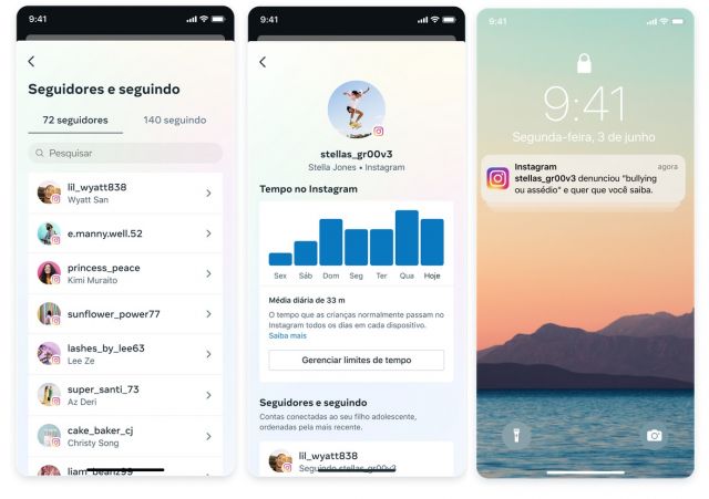 Os conteúdos incluem textos sobre como interagir de maneira segura com outros usuários, por exemplo. Na aba também será possível receber notificações quando os adolescentes denunciarem uma conta ou publicação, incluindo informações sobre o conteúdo denunciado, e ver quais contas que seguem os filhos e quais contas eles seguem.